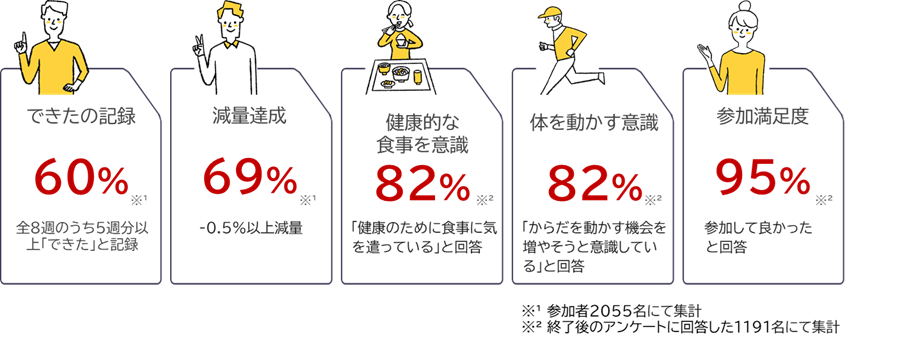 最後まで続けるための“低負担設計”としており、健康意識が低い層でも取り組みやすく、参加率向上が期待できます。
