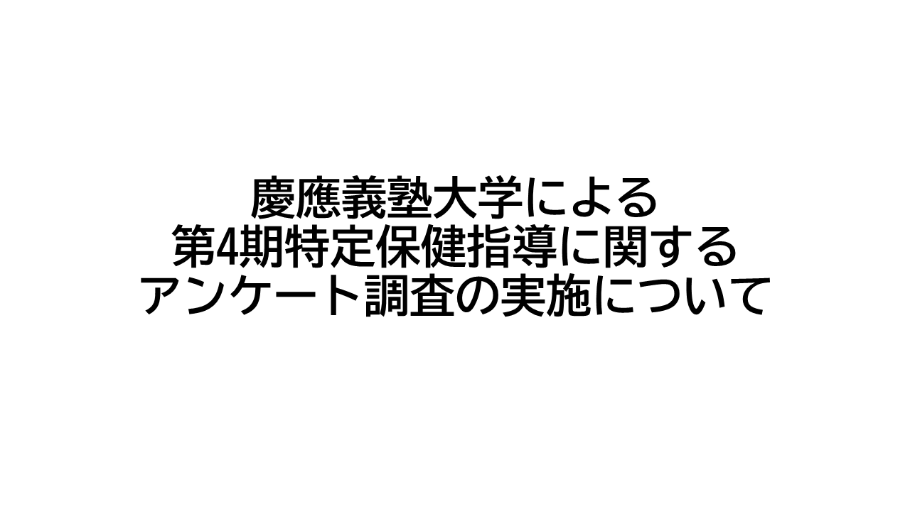 概要 この度、慶應義塾大学スポーツ医学研究センターでは、共同研究事業として、保険者および特定保健指導の実施機関様を対象に、「第4期特定保健指導」に関するアンケート調査を実施いたします。 実施目的 本調査は、 […]
